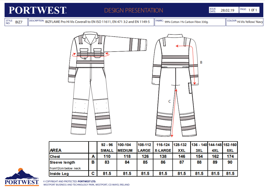 Portwest Bizflame Work Hi-Vis Anti-Static Coverall BIZ7